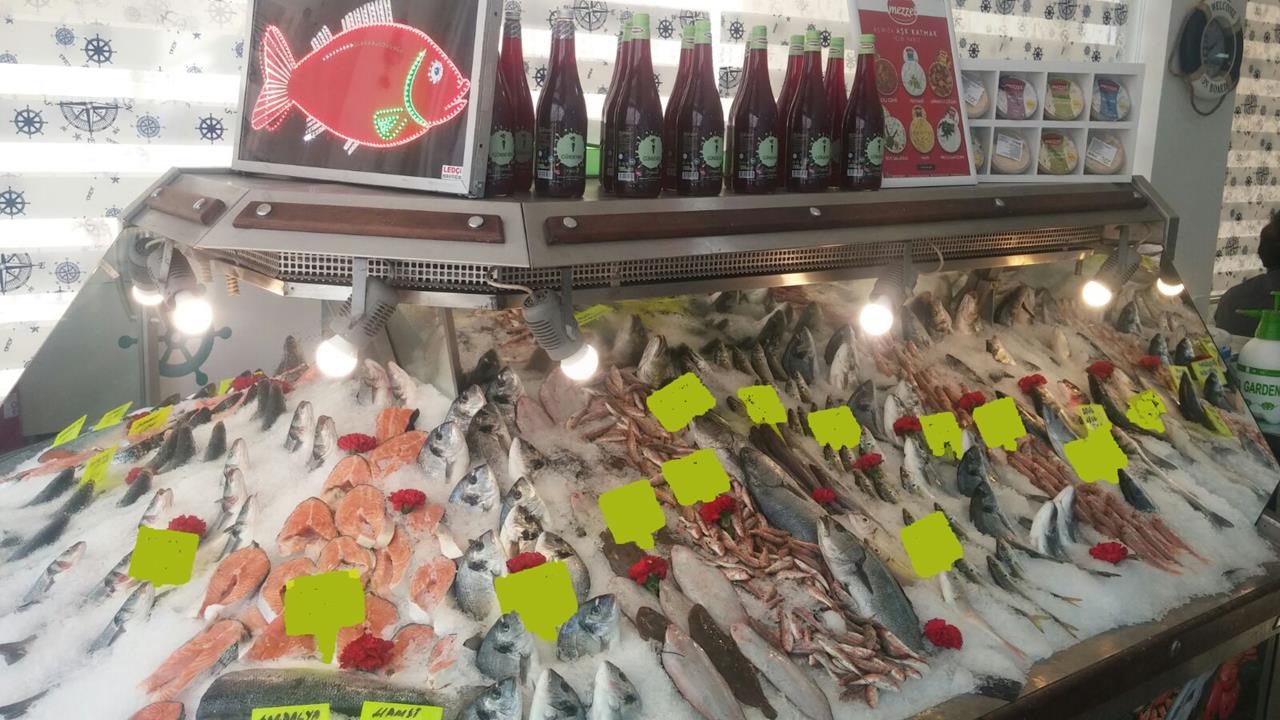 "Hamsi,Sardalya,Deniz Levrek,Deniz Çipura,Kalamar,Karides,Midye,Barbun,Mercan,Lidaki,Palamut,Lüfer,Çinekop,Somon,Kalkan,Lagos,Dil Balığı,Tekir,Uskumru"